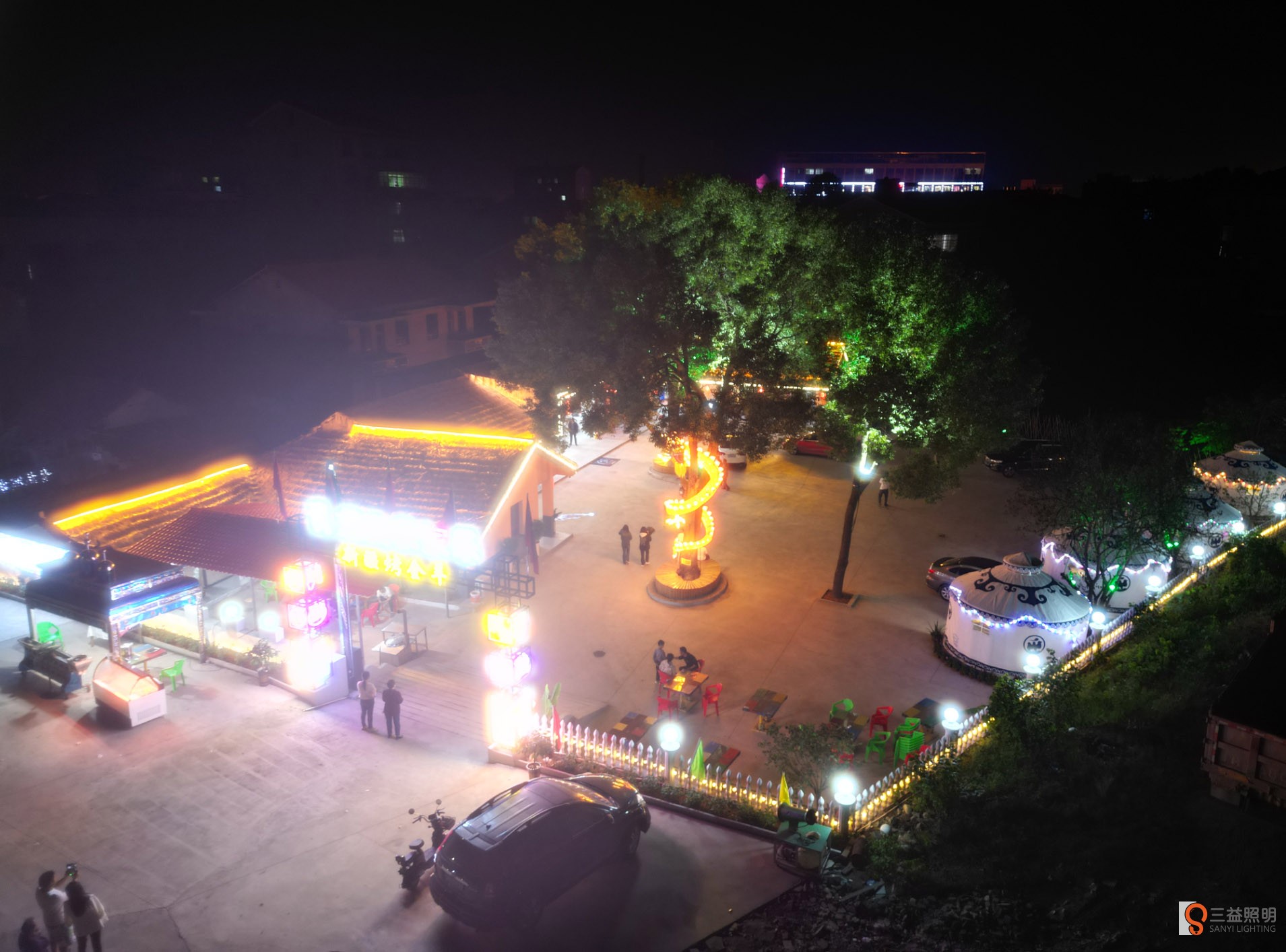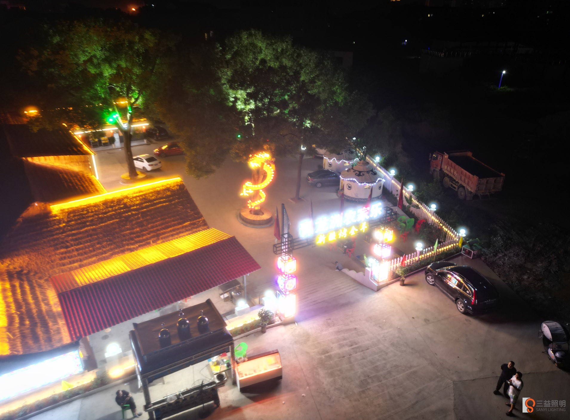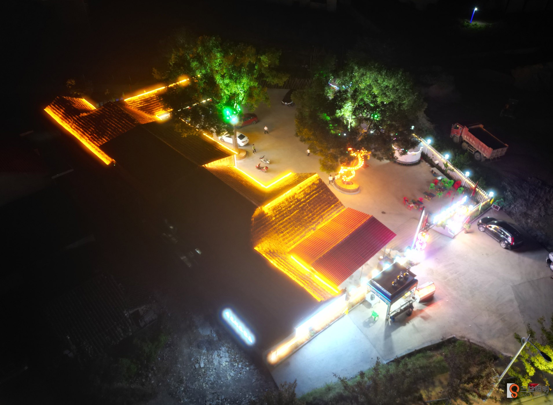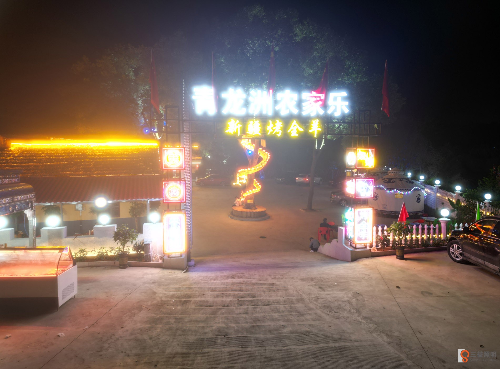 本工程采用網(wǎng)紅霓虹燈、燈箱、線條燈、洗墻燈、發(fā)光字、柱頭燈、燈帶、顯示屏、舞臺(tái)燈光、投燈燈等眾多燈光打造的網(wǎng)紅打卡農(nóng)莊。